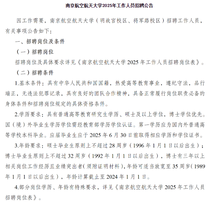 2025年江蘇南京航空航天大學(xué)招聘工作人員45人公告