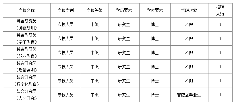 上海市教師教育學(xué)院(上海市教育委員會教學(xué)研究室)(以下簡稱“學(xué)院”)是全國第一個成立的省級教師教育學(xué)院。學(xué)院立足上海,全口徑支持學(xué)前教育、基礎(chǔ)教育、高等教育和職業(yè)教育30余萬教師的終身學(xué)習和專業(yè)發(fā)展,輻射長三角,服務(wù)全國。因發(fā)展需要,學(xué)院將按照上海教育實現(xiàn)教育現(xiàn)代化的新格局、新要求、新任務(wù),根據(jù)《上海市事業(yè)單位公開招聘人員辦法》(滬人社規(guī)〔2019〕15號)文件精神,遵循公開、平等、競爭、擇優(yōu)的原則面向社會公開招聘工作人員。