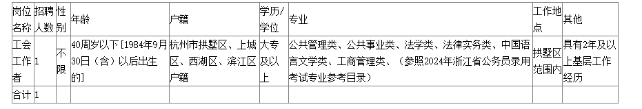 附件:2024年拱墅區(qū)總工會招聘職業(yè)化工會工作者情況一覽表