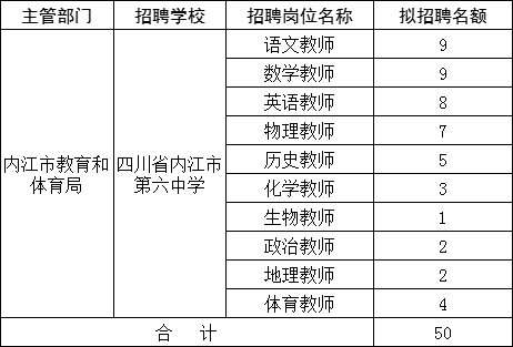 因?qū)W校工作需要,內(nèi)江市第六中學(xué)擬公開考核招聘優(yōu)秀教師?,F(xiàn)將有關(guān)事項(xiàng)公告如下: