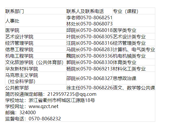 (二)應(yīng)聘人員對(duì)本公告或在指定網(wǎng)站公布的相關(guān)信息有異議的,可在公布之日起5日內(nèi)向衢州職業(yè)技術(shù)學(xué)院人事處反映,以便及時(shí)研究處理。