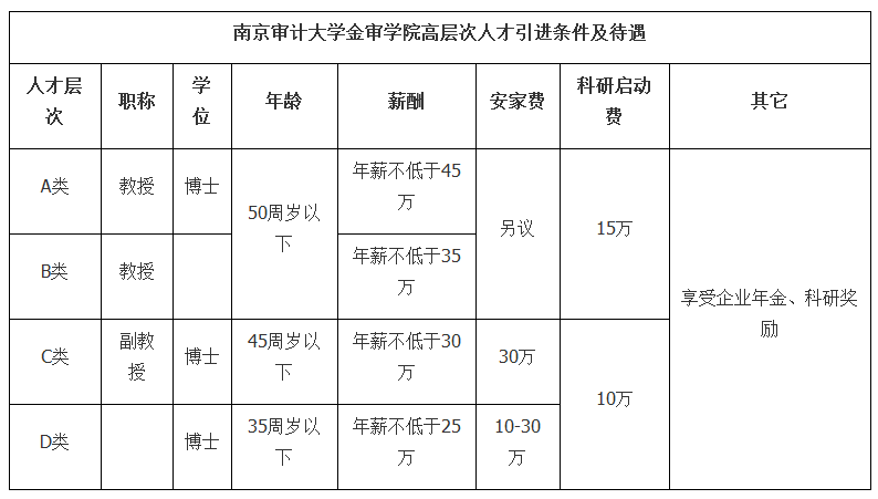 3、具備崗位要求的其他資格條件(詳見附件1《南京審計大學金審學院2024年高層次人才招聘崗位信息表》)。