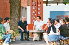 江西省贛州市章貢區(qū)高標(biāo)準(zhǔn)推進(jìn)基層立法聯(lián)系點(diǎn)建設(shè)運(yùn)行,通過“開門立法”等方式,有效架起社情民意“連心橋”。圖為2024年9月9日,在章貢區(qū)南外街道紅環(huán)路社區(qū),當(dāng)?shù)亓⒎?lián)絡(luò)員同社區(qū)居民進(jìn)行交流,就相關(guān)法律立法進(jìn)行意見征詢。人民圖片 胡江濤/攝