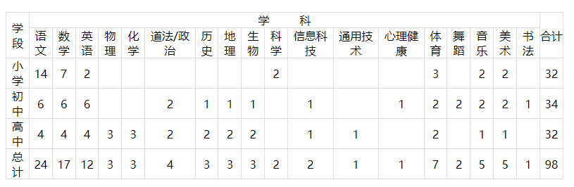2.應(yīng)聘科學、信息科技、通用技術(shù)、體育、舞蹈、音樂、美術(shù)、書法學科崗位的,專業(yè)技能應(yīng)較為突出。