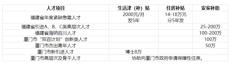 學(xué)校根據(jù)福建省、廈門市人才政策的有關(guān)規(guī)定,協(xié)助符合現(xiàn)行政策條件的人員積極申報(bào)相關(guān)人才項(xiàng)目及補(bǔ)貼。