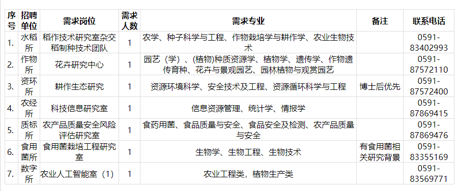 2024年福建省農(nóng)業(yè)科學(xué)院公開招聘博士研究生人員方案(二)