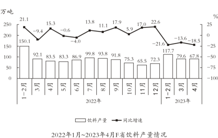 問:以下柱狀圖反映了2022年哪一時(shí)間段內(nèi),F(xiàn)省飲料產(chǎn)量環(huán)比增量的變化趨勢(shì)(橫軸位置代表0)( )?