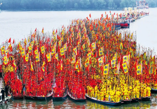 2024年4月6日,泰州姜堰溱潼會船在江蘇省泰州市姜堰區(qū)溱湖國家濕地公園開幕,數(shù)百條各式各樣的船只和上萬名會船選手云集溱湖,飛篙走槳,奮勇爭先,呈現(xiàn)“千篙萬槳鬧溱湖,百舸爭流逐春潮”的壯觀場景,演繹歷久彌新的民俗畫卷。溱潼會船由南宋相沿至今,歷經(jīng)數(shù)百年傳承,被列入國家級非物質(zhì)文化遺產(chǎn)名錄。圖為當日參加溱潼會船表演的船只在湖面上整裝待發(fā)。新華社發(fā) 顧繼紅/攝