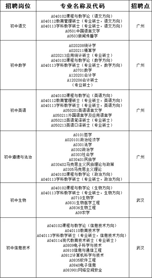招聘語文、數學、英語、道德與法治、生物、信息技術教師各1名。