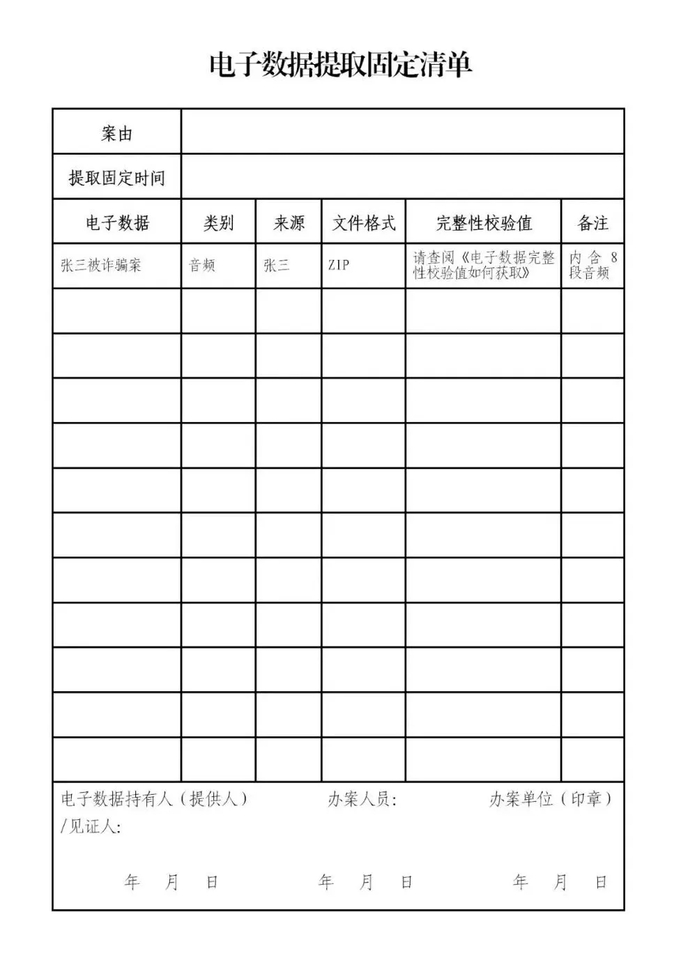 部發(fā)文書(shū)《電子數(shù)據(jù)現(xiàn)場(chǎng)提取筆錄/固定清單》填寫示例