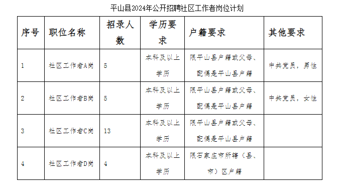 石家莊市平山縣2024年公開招聘社區(qū)工作者公告