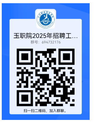 報考玉溪職業(yè)技術(shù)學(xué)院崗位的考生,報名材料發(fā)送到以下郵箱:yxwxrsc@126.com,同時掃描QQ群二維碼(群號:694732176)實(shí)名驗(yàn)證后加入“玉職院招聘工作”QQ群,后續(xù)招聘工作信息同步通過QQ群發(fā)布,凡未加入QQ群造成報名不成功或接收不到招聘工作信息的責(zé)任自負(fù)。
