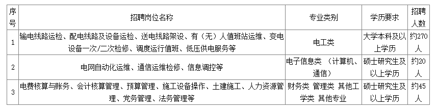4.公司組織架構(gòu)高度扁平化,無縣公司。本次招聘的崗位涉及公司所屬地市供電公司和相關(guān)專業(yè)公司,主要安排至生產(chǎn)一線的技術(shù)、技能類等崗位。具體崗位和招聘人數(shù)如下: