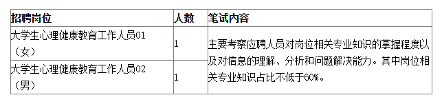 因工作需要,我校本次面向社會(huì)公開(kāi)招聘員額制大學(xué)生心理健康教育工作人員2名,均為專業(yè)技術(shù)人員。本次招聘的崗位納入海南省人員總量管理,為員額人員。