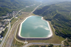 這是2021年9月8日在甘肅省天水市拍攝的引洮供水工程楊家灣調(diào)蓄水池(無人機(jī)照片)。新華社記者范培珅攝