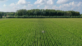 2024年8月8日,在吉林省梨樹縣孤家子鎮(zhèn),無人機(jī)為作物施肥(無人機(jī)照片)。新華社記者張楠攝