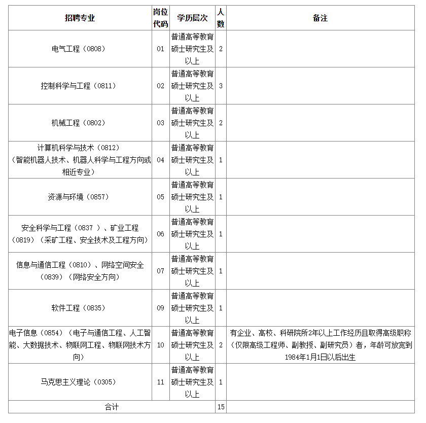 根據(jù)教師崗位空缺情況和學(xué)校事業(yè)發(fā)展需要,2024年擬公開招聘優(yōu)秀碩士畢業(yè)生15名。招聘專業(yè)及計(jì)劃見(jiàn)附件《河南工業(yè)和信息化職業(yè)學(xué)院2024年公開招聘碩士研究生一覽表》(以國(guó)務(wù)院學(xué)位委員會(huì)、教育部印發(fā)的《研究生教育學(xué)科專業(yè)目錄(2022年)》為準(zhǔn),學(xué)科括號(hào)內(nèi)的專業(yè)方向僅為招聘崗位條件要求,不作為資格審核依據(jù))。