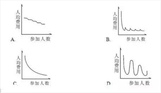 【例題】某學(xué)校組織學(xué)生春游,往返目的地時(shí)租用可乘坐10名乘客的面包車(chē),每輛面包車(chē)往返的租金為250元。此外,每名學(xué)生的景點(diǎn)門(mén)票和午餐費(fèi)用為40元,如果求盡可能少租車(chē),則以下哪個(gè)圖形最能反映平均每名學(xué)生的春游費(fèi)用支出與參加人數(shù)之間的關(guān)系?( )