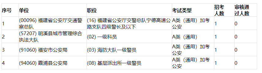 2. 無(wú)人報(bào)考或無(wú)審核通過(guò)人數(shù)的職位(4個(gè)職位)