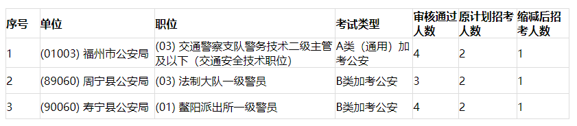 一、3個(gè)職位審核通過(guò)人數(shù)小于原計(jì)劃招考人數(shù),減少錄用計(jì)劃(招考人數(shù))3人(詳見(jiàn)附表1)。
