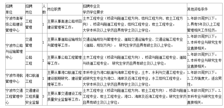 寧波市交通運輸局局屬事業(yè)單位公開招聘公告