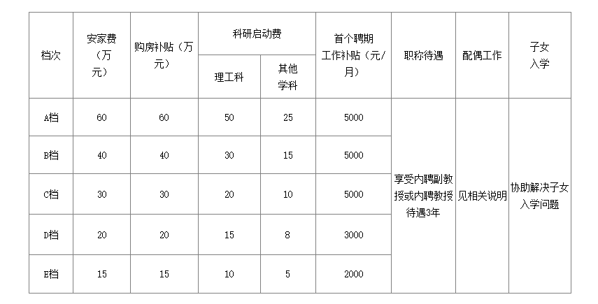 優(yōu)秀博士享受待遇見下表