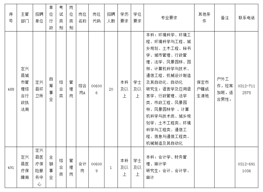 保定市2025年度事業(yè)單位公開招聘工作人員公告《崗位信息表》中,定興縣環(huán)衛(wèi)所006006和定興縣醫(yī)療保險服務(wù)中心006009的崗位條件以本補充公告為準(zhǔn)。