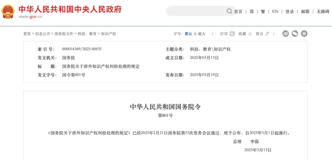 國務院關(guān)于涉外知識產(chǎn)權(quán)糾紛處理的規(guī)定
