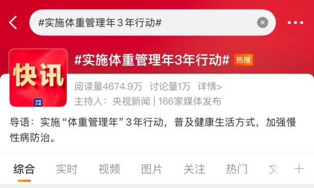 3月9日,國(guó)家衛(wèi)生健康委員會(huì)主任雷海潮在民生主題記者會(huì)上表示,將持續(xù)推進(jìn)“體重管理年”行動(dòng),引導(dǎo)醫(yī)療衛(wèi)生機(jī)構(gòu)設(shè)立體重門(mén)診。