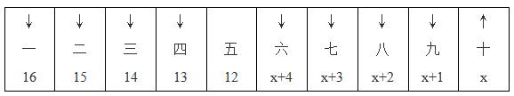 六七八九最小值能取多少呢?最少應(yīng)該取決于第十名的值,題目中又提到了數(shù)量各不相同,因此,可以得到第九名最少應(yīng)該比第十名多一個(gè),即x+1,第八名最少應(yīng)該比第九名多一個(gè),即x+2,同理,第七為x+3,第六為x+4;一二三四最少取決于誰呢?第五名,與前面同理,則一二三四依次為16、15、14、13,如下圖所示: