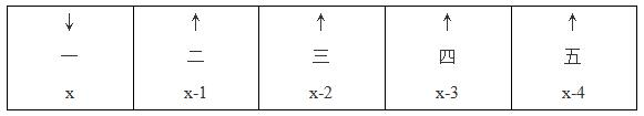要想第二的棵數(shù)盡可能地大,最大也要比第一少一棵,即x-1,要想第三的棵數(shù)盡可能地大,最大也要比第二少一棵,即x-2,同理第四為x-3,第五為x-4。所列表格如下圖所示: