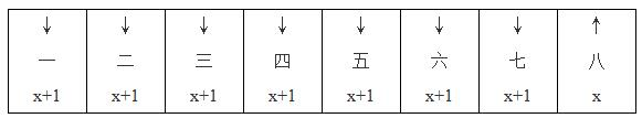 已知“分到人事部的人數(shù)比分到其他部門的人數(shù)都少”,說明其他部門都比人事部的人數(shù)多,則要想第七的人數(shù)盡可能地小,最少也要比第八多一人,即x+1,要想第六的人數(shù)盡可能地小,因未提互不相等,故可以相等,最小可以與第七相等取到x+1,要想第五的人數(shù)盡可能地小,最小可以與第六相等取到x+1,同理第一二三四最小均可取到x+1。所列表格如下圖所示: