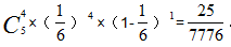 【例1】擲一枚骰子5次,問這5次中有4次出現(xiàn)6點的概率?