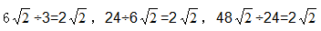 (一)例1和例2都不含有加減符號,當根號下數(shù)字不同時,我們可以將根號外的數(shù)字全部化入根號內(nèi)尋找規(guī)律;而當根號下數(shù)字相同時,我們可以通過做除法找出規(guī)律。