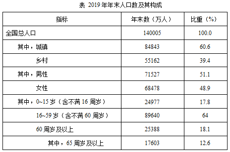 問(wèn)題:2019年年末,城鎮(zhèn)常住人口中,男性人口占比至少為: