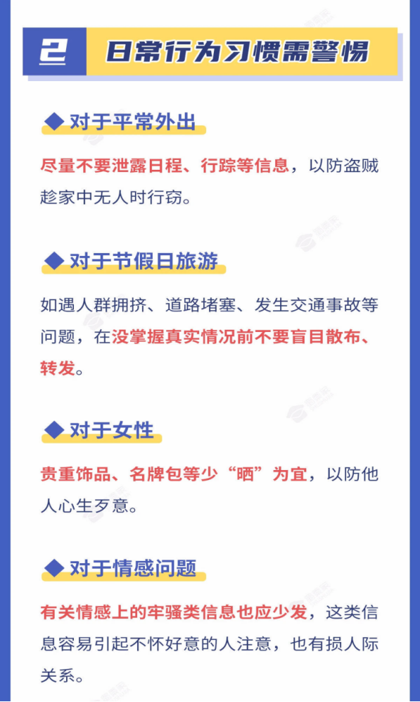 你知道嗎,有些行為可能會泄露個人的相關信息,如果被別有用心的人看到、利用,將造成家中或個人財物被盜竊,甚至危害自己和家人人身安全。