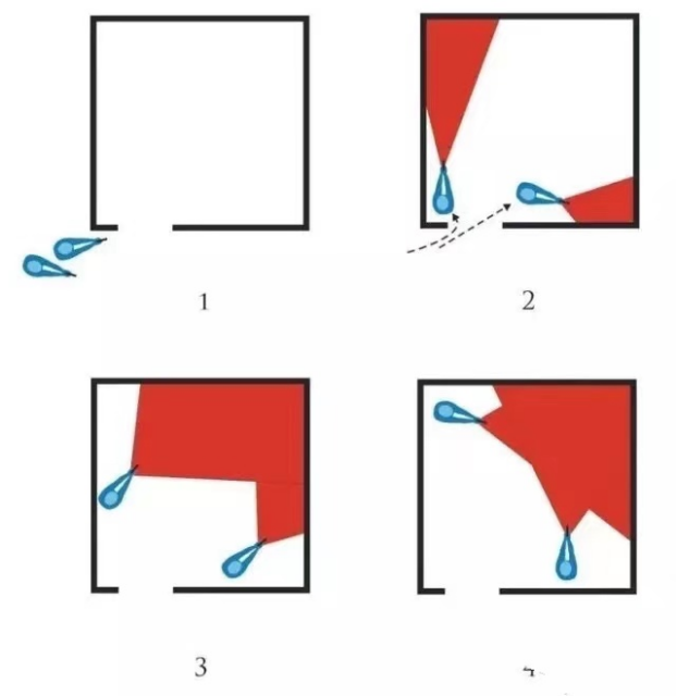 可是,如果房間的形狀是不對稱時,推薦的戰(zhàn)術(shù)流程則變成了下面這樣: