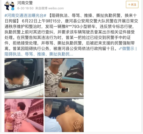 5.輕微暴力,行為人撕扯、推搡等輕微暴力行為阻礙民警執(zhí)法。