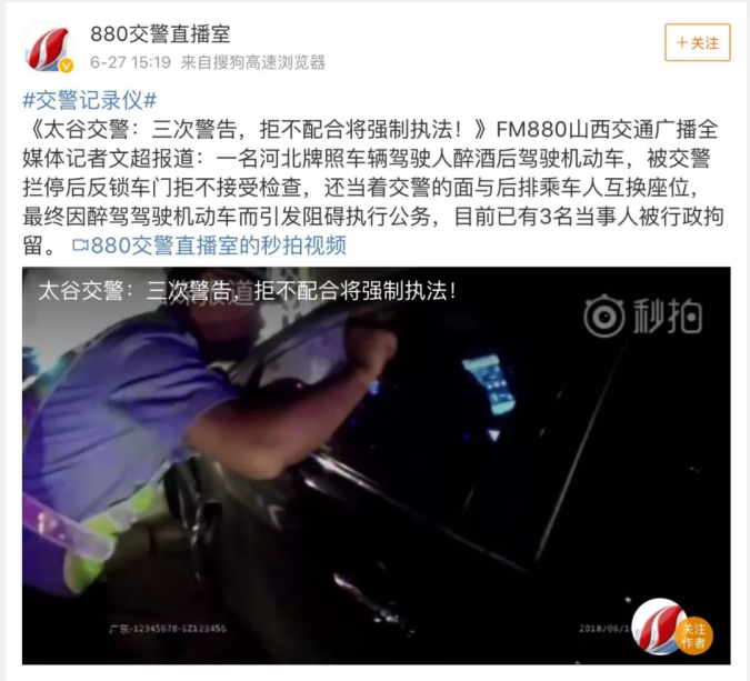 2.排除妨礙。警告無效的,經(jīng)口頭或其他方式請示辦案部門負責人批準??梢圆扇∑崎T、破窗等強制手段排除妨礙,要求行為人接受檢查。對于車內(nèi)正在發(fā)生危害公民人身安全或者公共安全行為的,現(xiàn)場民警可以直接采取強制手段排除妨礙。