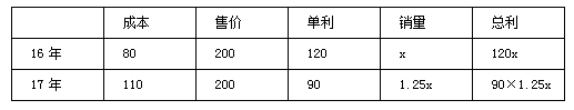 某品牌代理商2016年以80元/件的價格購進一批毛衫,以200元/件的價格賣出。2017年受市場環(huán)境影響,毛衫的進價上漲了30元,售價不變。2017年毛衫的銷量比2016年提高25%,但總利潤比2016年少了6萬元。那么該代理商2017年銷售這種毛衫共獲利多少萬元?