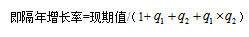 ,2016年的棉產(chǎn)同比增長率為,2015年的棉花產(chǎn)量為。如果問題所求為2017年棉花產(chǎn)量較2015年棉花產(chǎn)量增長了百分之幾?這樣的題目就是求隔年增長率(現(xiàn)期和基期之間間隔一個統(tǒng)計周期)。根據(jù)現(xiàn)期值=基期值×(1+增長率),可以推出2016年的棉花產(chǎn)量為