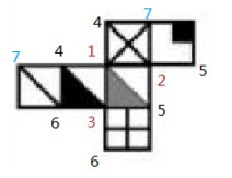 第三步:補(bǔ)齊剩余點(diǎn):我們看到4,現(xiàn)在一共有兩個(gè)4,這兩個(gè)4一共連接了三個(gè)面,所以4也是一個(gè)確定頂點(diǎn),可以使用頂點(diǎn)法。在平面展開圖外圍,與確定頂點(diǎn)4距離為“1”的點(diǎn)是同一個(gè)點(diǎn),我們剛剛根據(jù)1找到的4,不能再標(biāo)1,這時(shí)發(fā)現(xiàn)兩個(gè)4兩邊的點(diǎn)都是空的,沒有命名,故命名下一個(gè)數(shù)字7.