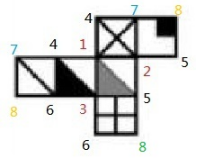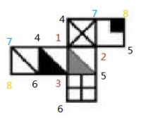 兩個(gè)8只連了兩個(gè)面,在最后的右下角標(biāo)上第三個(gè)8,此時(shí)每個(gè)數(shù)字都連接了三個(gè)面,標(biāo)齊正確。