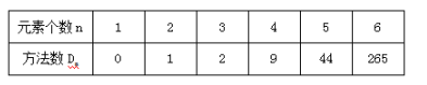 對(duì)于這道題目中涉及到的元素?cái)?shù)也就是信封的個(gè)數(shù)我們用字母n來表示,而所要求得的方法數(shù)我們用字母Dn來表示,因?yàn)轭}干要求信與信封編號(hào)不能相同,由此我們判定這是一道錯(cuò)位重排類型的題目。那么對(duì)于錯(cuò)位重排問題我們只需要記住下邊這個(gè)表格,會(huì)從題干中找到錯(cuò)位重排的元素個(gè)數(shù),這種問題就可以輕而易舉地做出來了。