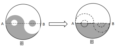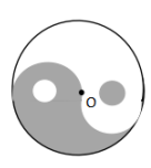 【例題2】如圖,太極八卦圖外部是以O(shè)點(diǎn)為圓心,6cm為半徑的圓,其內(nèi)部白色小圓與黑色小圓的圓心與大圓圓心在同一條直線上,且小圓直徑為2cm,求圖中陰影部分的面積?