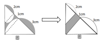 一個(gè)不規(guī)則的部分,分別連接兩半圓與等腰三角形兩邊的交點(diǎn)(如圖),根據(jù)直徑對(duì)應(yīng)的圓周角是90°,可得兩虛線垂直于斜邊且相互平行,又因?yàn)榇笕切问堑妊切?,則兩個(gè)小三角形也是等腰三角形,所以外部兩個(gè)弧形陰影的面積與內(nèi)部兩個(gè)弧形的面積相等,故將外部大小兩弧形陰影分別向左、右旋轉(zhuǎn)90°(如圖8),陰影部分面積就轉(zhuǎn)化成了梯形的面積,所以梯形面積為