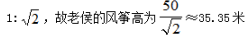 ,老侯的風(fēng)箏與地面成45°,則風(fēng)箏高與風(fēng)箏線長之比為