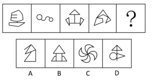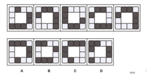 其實(shí)非常簡單,就是個共性問題:題干5幅圖中,1個黑塊→2個黑塊→3個黑塊是沿著順時針的順序排列的,而選項中A、B、D是逆時針順序嗎,只有C和題干一致。