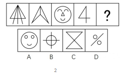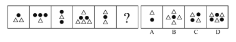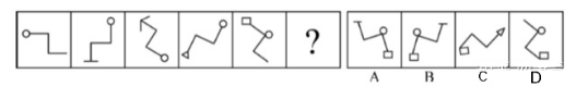 例6:從所給四個選項中,選擇最合適的一個填入問號處,使之呈現(xiàn)一定的規(guī)律性: