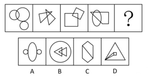此題稍有難度,已給圖形中,黑色元素與白色元素加和都為12個,再加上A選項的一黑一白元素,則黑色元素與白色元素加和都為13個。其實(shí)這題,運(yùn)用后面所說的差異思維(觀察選項彼此差異),更易找到突破口。